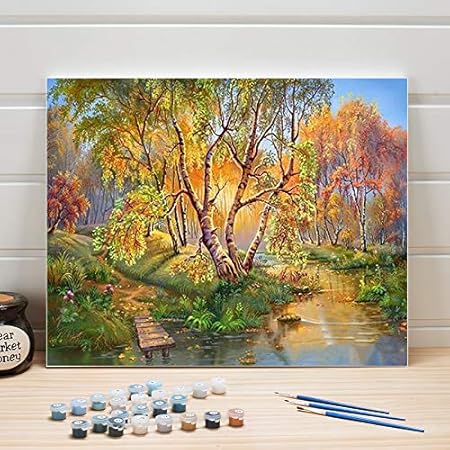 Artve Dipingere Con I Numeri Scenario Autunnale Acrilico Su Tela Colore Per Numero Per Adulti Quadri Murali Per Soggiorno 40x50cm Amazon It Casa E Cucina