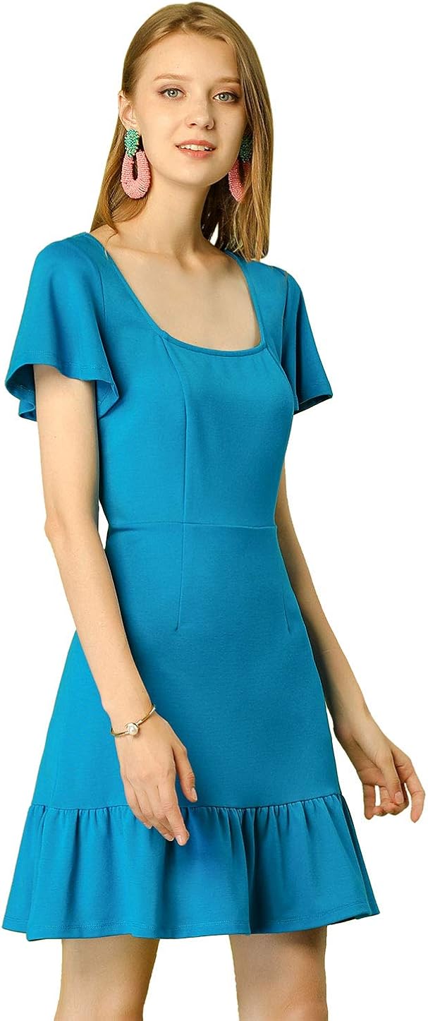Allegra K Donna Abito Cocktail Orlo Arricciato Maniche Corte Scollo Quadrato Blu M Amazon It Abbigliamento