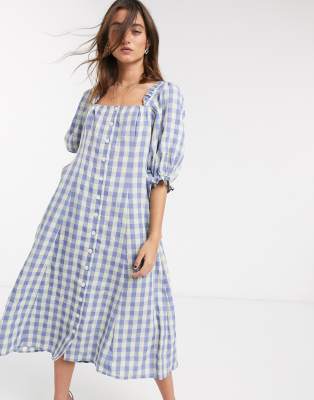Capulet Haddie Neptune Vestito Midi A Quadretti Con Scollo Quadrato Wamsi