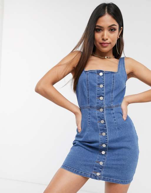 Missguided Petite Vestito Corto Di Jeans Con Scollo Quadrato E Bottoni Asos