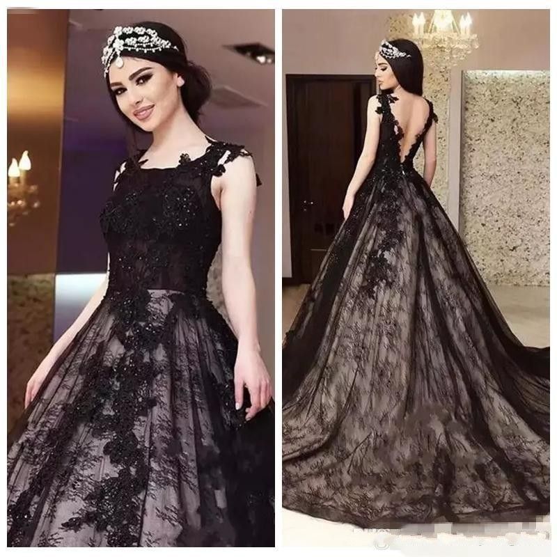 Acquista Ultimi Abiti Da Sera Gotici Neri A Line Con Scollo Quadrato In Rilievo Paillettes A Forma Di V Indietro Cappella Treno Abiti Da Appliques In Pizzo A 149 13 Dal Magicglasses