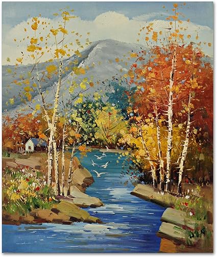 Raybre Art Quadri Su Tela Senza Telaio 100 Dipinti A Mano Dipinti A Olio Di Paesaggi Impressionista Alberi Per Decorazione Casa Arte Parete Ruscello Amazon It Casa E Cucina