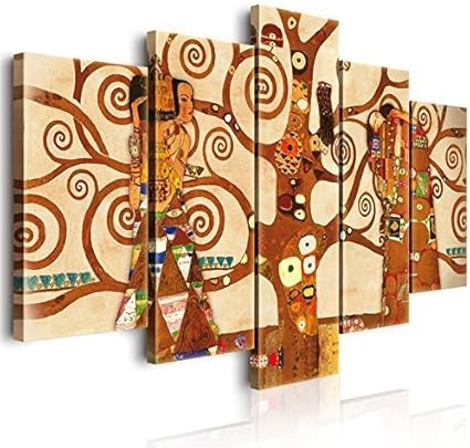 Dekoarte Quadro Moderno Su Tela Montato Su Telaio In Legno Di 5 Pezzi Stile Astratto L Albero Della Vita Di Gustav Klimt A Colori 150x80 Cm Eprice