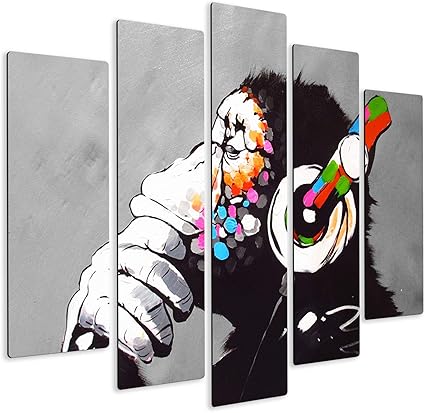 Giallobus Quadro Multipannello 5 Pezzi Banksy Dj Monkey Stampa Su Legno Mdf Pronto Da Appendere 140x100 Cm Amazon It Casa E Cucina