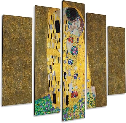 Lupia Quadro Moderno 5 Pezzi In Legno Vogue 66x115 Cm Il Bacio Di Klimt Amazon It Casa E Cucina