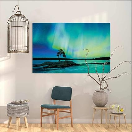 Oncegod Modello Pittura A Olio Art Sticker Aurora Borealis Singolo Albero Su Pietra Rocciosa Di River Borealis Earth Beauty Facile Da Pulire Pittura A Olio Blu Lime Verde W31 Xl23 Amazon It Casa