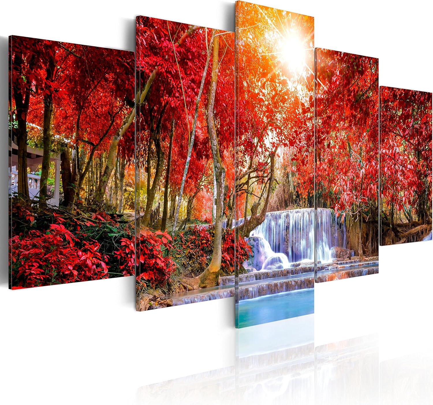 Murando Quadro 200x100 Cm 5 Pezzi Stampa Su Tela In Tnt Xxl Immagini Moderni Murale Fotografia Grafica Decorazione Da Parete Cascata Natura Paesaggio Alberi Colorato C B 0120 B M Amazon It Casa E Cucina