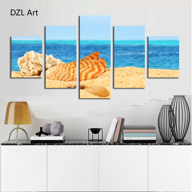 5 Pannelli Senza Cornice Conchiglie E Sabbia Immagine Moderna Della Decorazione Della Parete Stampa Su Tela Pittura A Olio Della Tela Di Canapa Pittura Per Il Regalo Di Natale Print On Canvas Decorative Printsmodern