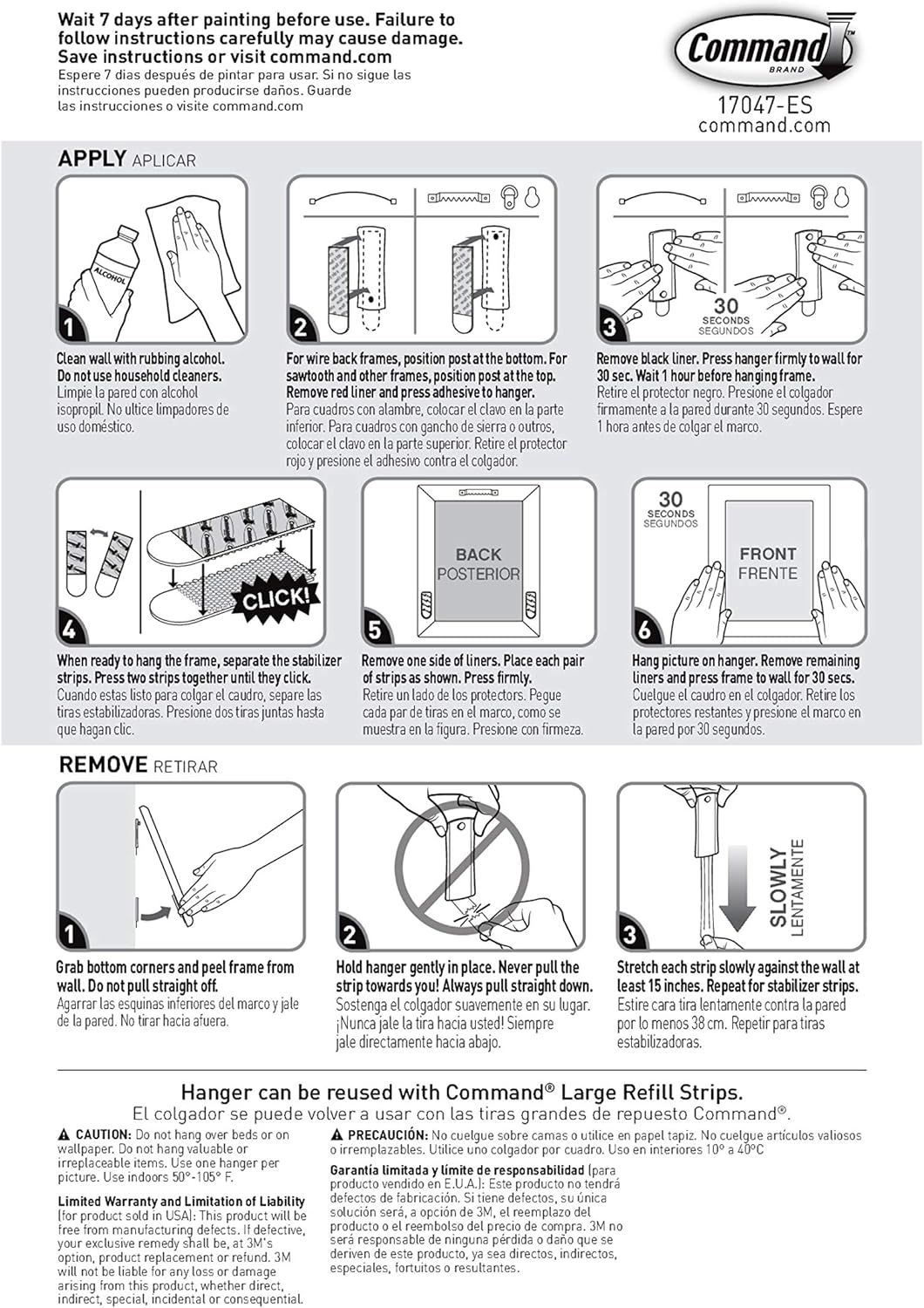 Cornici Istruzioni Solo In Lingua Inglese Grigio Command 17047 Ganci Per Appendere Quadri Con Banda Di Fissaggio Casa E Cucina Cumbresbox Cl