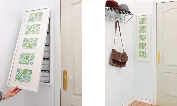 Como esconder quadro de luz. Já mostramos aqui como a ariane fez no apartamento dela confira outras ideias abaixo. Para facilitar o acesso podemos instalar dobradiças diretamente na parede que só deve funcionar se a parede tiver o nivelamento perfeito o que nunca acontece ou sobre uma estrutura de madeira que emoldura o quadro de luz. Em projetos elétricos normalmente fica localizado em lugares que são poucos utilizados como lavanderias garagens ou até dentro de armários. Como esconder quadro de luz o quadro de luz é uma caixa que se encontram os disjuntores dos circuitos de uma casa ou apartamento.