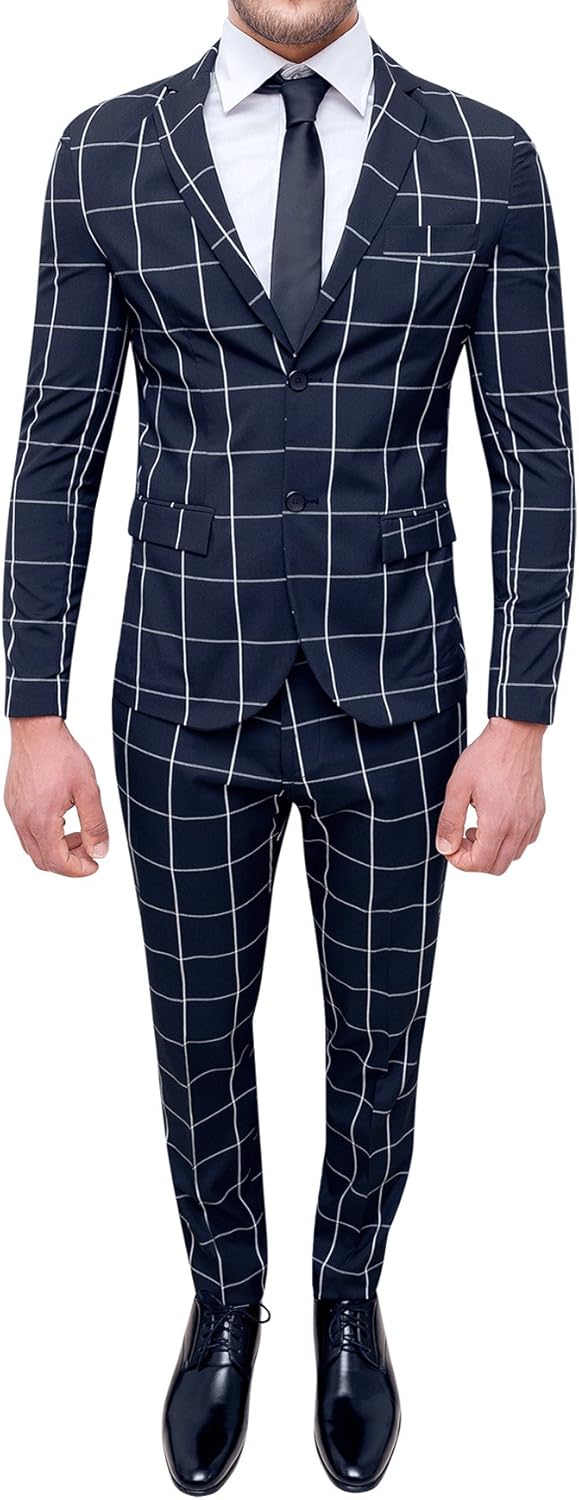 Pg Uomo Abito Da Uomo A Quadri 3 Pezzi Giacca Gilet Pantaloni Slim Fit Con Un Bottone Amazon It Abbigliamento