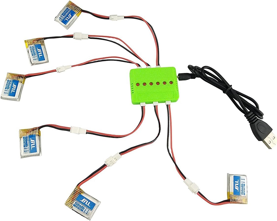 Caricatore 6in1 Per Rc Droni Quadricotteri Jjrc H36 E010 Furibee F36 Realacc H36 Batteria Pezzi Di Ricambio 3 7v 150mah Lipo Fytoo 6pcs Batterie Lipo Ricaricabili Radiocomandati E Telecomandati Veicoli