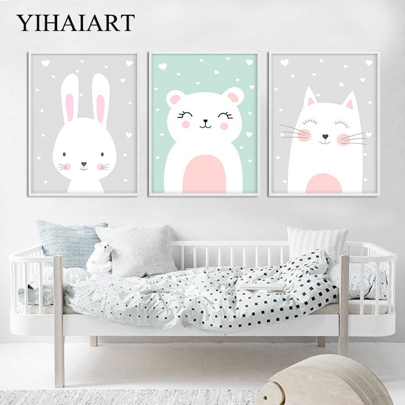 Acquista Coniglio Cartoon Animal Cat Stampa Su Tela Poster Scuola Materna Di Arte Della Parete Della Tela Di Canapa Pittura Nordica Bambini Decorazione Quadro Bambino Decorazione Camera 5 A 4 24 Dal