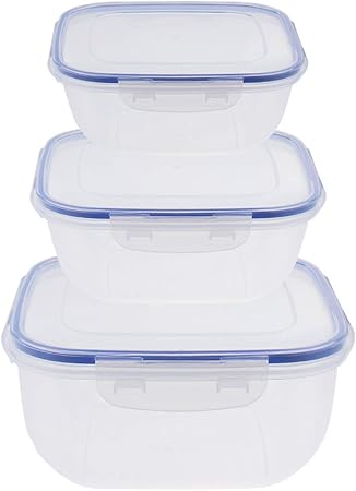 Set Di 3 Contenitori Per Alimenti Quadrati In Plastica Impermeabili Con Coperchio A Scatto Senza Bpa Impilabili Adatti A Microonde E Freezer Amazon It Casa E Cucina