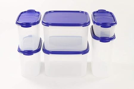 Tupperware Set Di 2 Barattoli Quadrati Da 2 6 L 2 1 7 L 1 1 L 500 Ml Colore Blu Amazon It Casa E Cucina