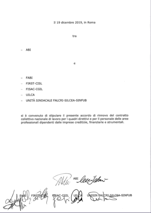Firmato Il Rinnovo Del Ccnl Abi Aree Professionali E Quadri Direttivi First Network Dirigenti