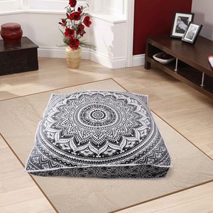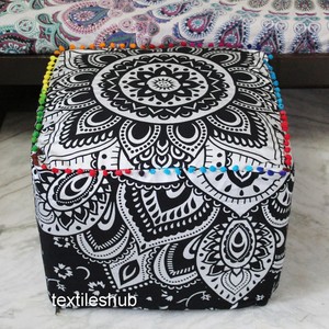 18 Quadrato Pouf Ottomano Copertura Indiano Nero Argento Mandala A Sedere Poggiapiedi Caso Ebay