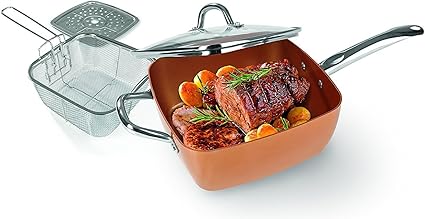 Copper Pan Chef Padella In Rame Quadrata Coperchio Cestello Per Friggere Base Vapore