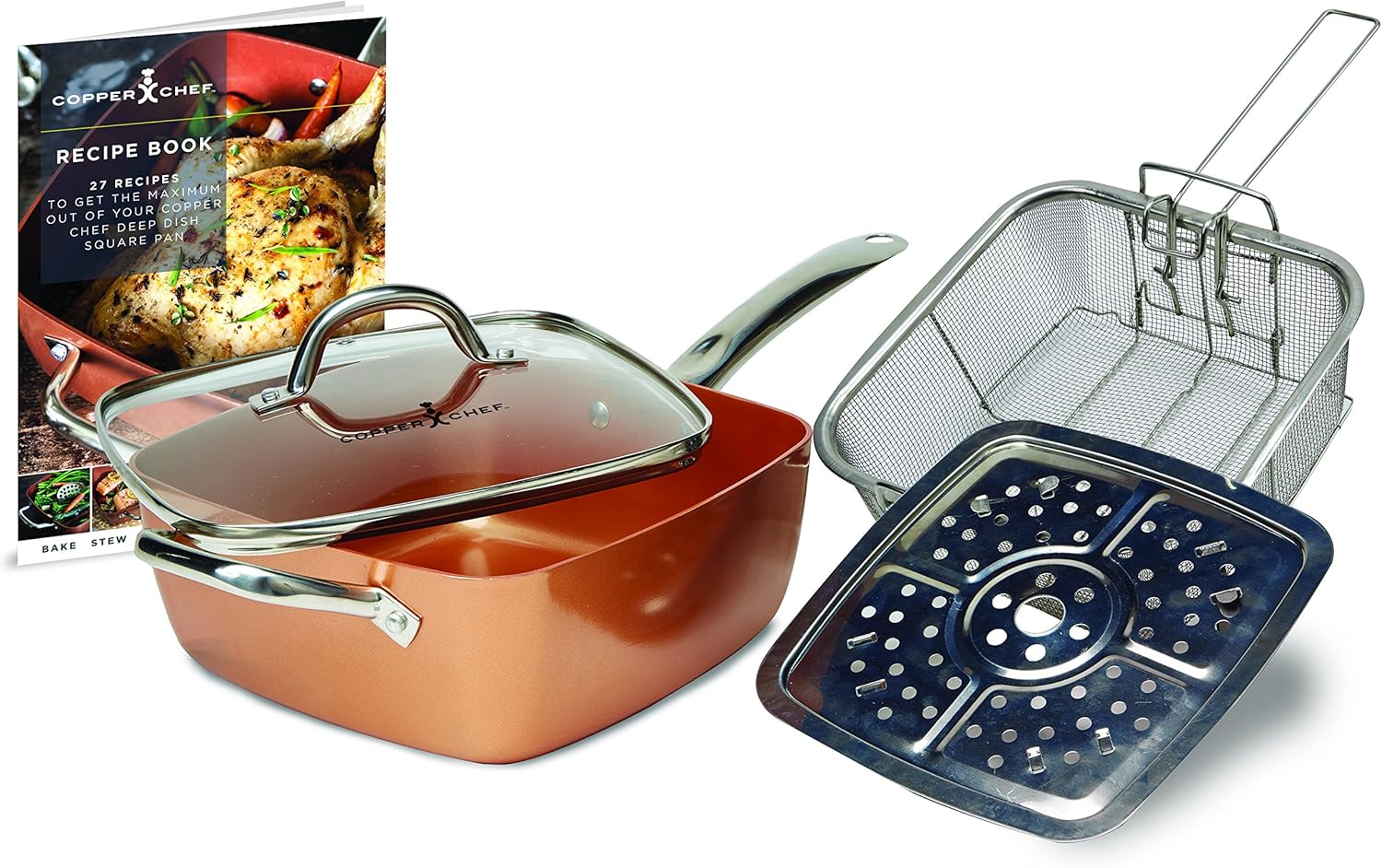 Copper Chef Padella Quadrata In Ceramica Per Arrostire Friggere E Cuocere A Vapore 4 Pezzi Amazon It Casa E Cucina