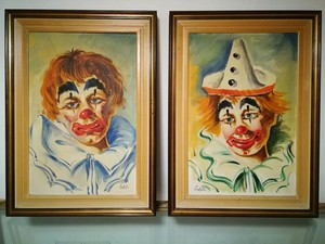Coppia Quadri Pagliacci Autore Cecchetto Anni 70 Misurano Entrambi 54x74 Cm Ebay