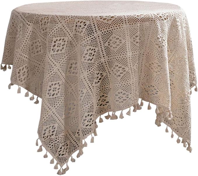 Sxshun Tovaglia All Uncinetto Fatta A Mano Tovaglia Traforata Da Tavola In Cotone Copritavolo Elegante Con Scarti Beige 140 160 Amazon It Amazon It