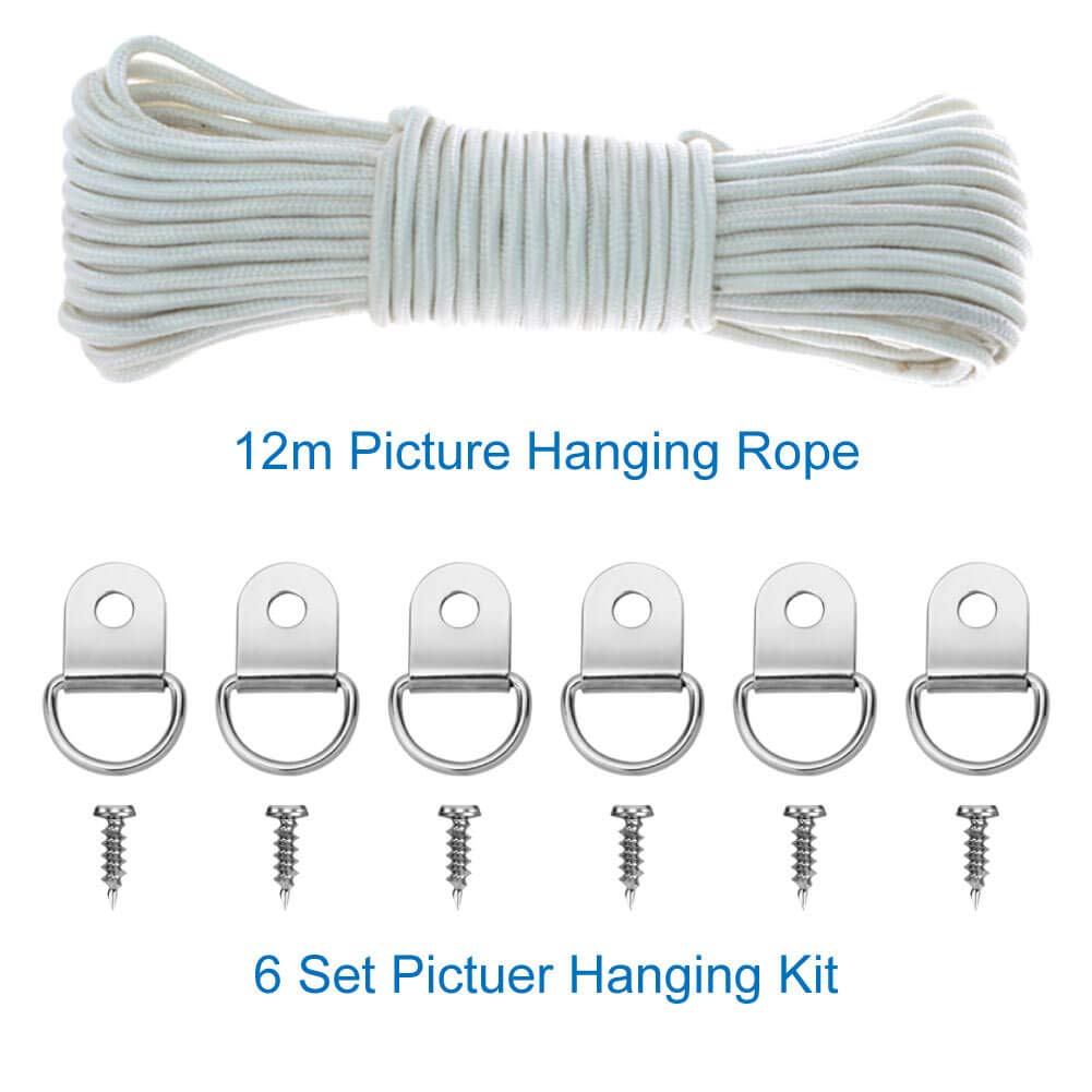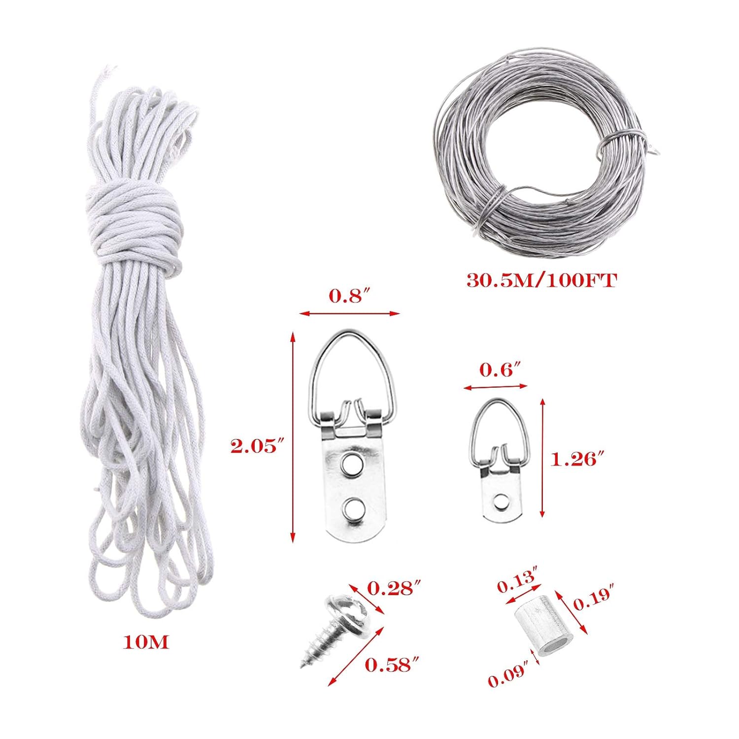 Hobby Creativi Kit Di Ganci A D Per Appendere Quadri 30 5 M Per Montaggio A Parete Manicotto In Acciaio Inox Foto Corda Di Cotone Dipinti Filo Per Appendere Quadri Con Viti 92
