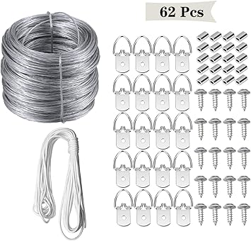 Ototec Kit Di Ganci A D Per Appendere Quadri 92 Pezzi Con Viti Manicotto In Acciaio Inox Filo Per Appendere Quadri 30 5 M Corda Di Cotone Per Montaggio A Parete Dipinti Foto