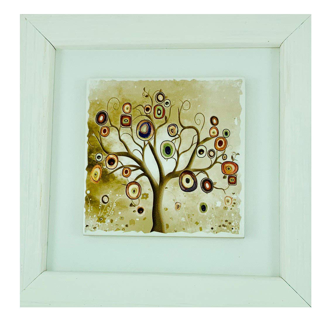 Quadro Legno Cornice Bianca Shabby Chic Con Mattonella Ceramica Nel Centro Decorata E Colorata In Rilievo 100 Made In Italy 9 Soggetti Albero Della Vita Sacra Famiglia Natura 25 X 25 Cm