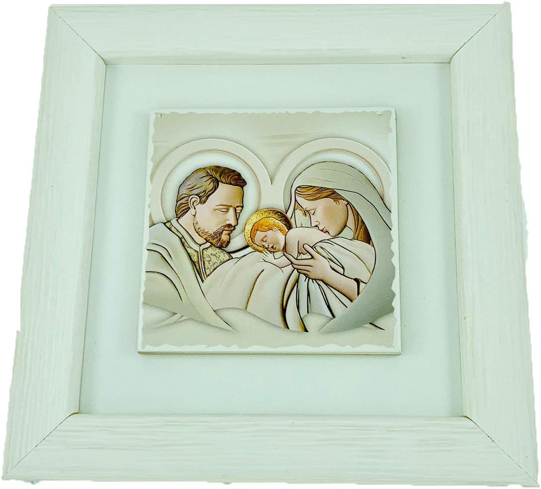 Quadro Sacra Famiglia Argento Con Cornice Bianca A Quadri