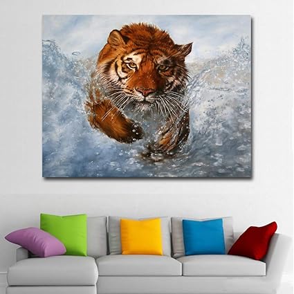 Nimcg Tiger Running In The Water Quadro Murale Stampato Su Tela Poster Per Soggiorno Senza Cornice 30x40 Cm Amazon It Casa E Cucina