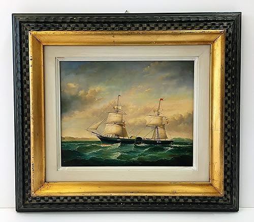 Dipinto A Olio Su Tavola Con Cornice Soggetto Veliero Cm35 7x40 7 Amazon It Handmade