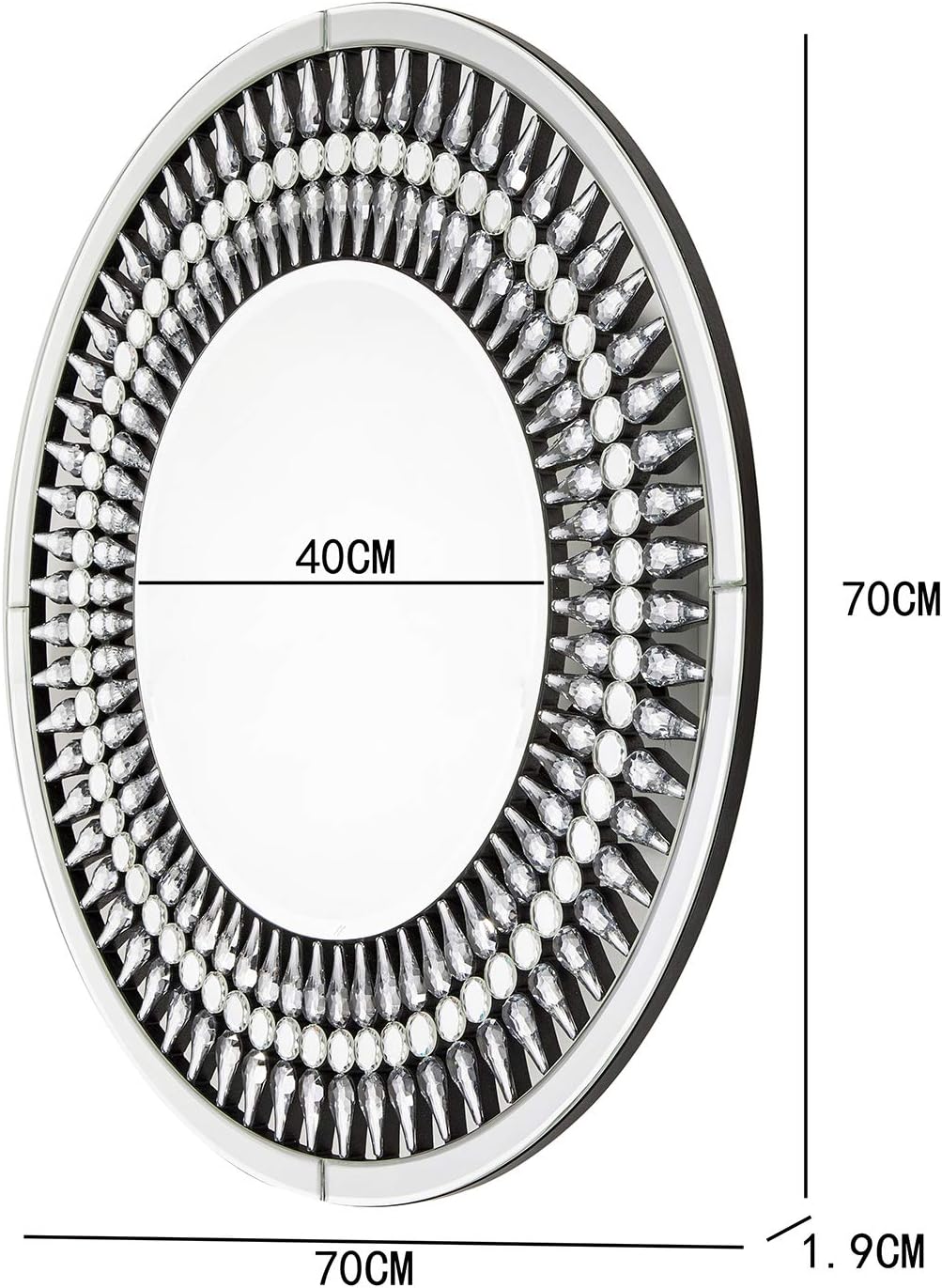 Con Mosaico Di Gioielli Brillanti Dagli Angoli Smussati Richtop Specchio Grande Da Parete Con Cornice Rotonda Color Argento 70 X 70 Cm Per Soggiorno Camera Da Letto Specchi Da Parete Casa E Cucina