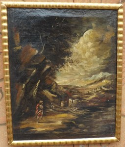 Quadro Dipinto Ad Olio Su Tela Con Cornice 900 Paesaggio Con Figure Cm 50 X 60 Ebay