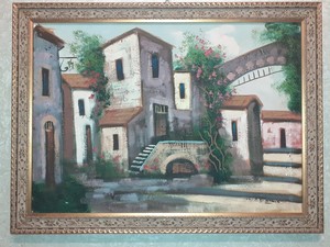 Quadro Dipinto A Mano Olio Su Tela Cortile Scorcio Cornice In Legno Oro 60x80 Eur 69 00 Picclick It