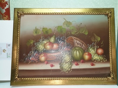 Quadro Frutta 60x80 Cornice In Legno Colore Foglia Oro Olio Su Tela Classico Ebay