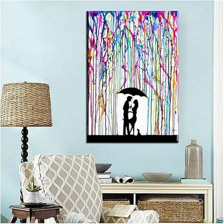 Lwjzqt Quadro Dipinto Su Tela Astratto Sotto La Pioggia Uomo Donna Amore Poster Astratto Per Decorazioni Per La Casa Quadro 60x80 Cm 23 6 X 31 5 Senza Cornice Amazon It Casa E Cucina