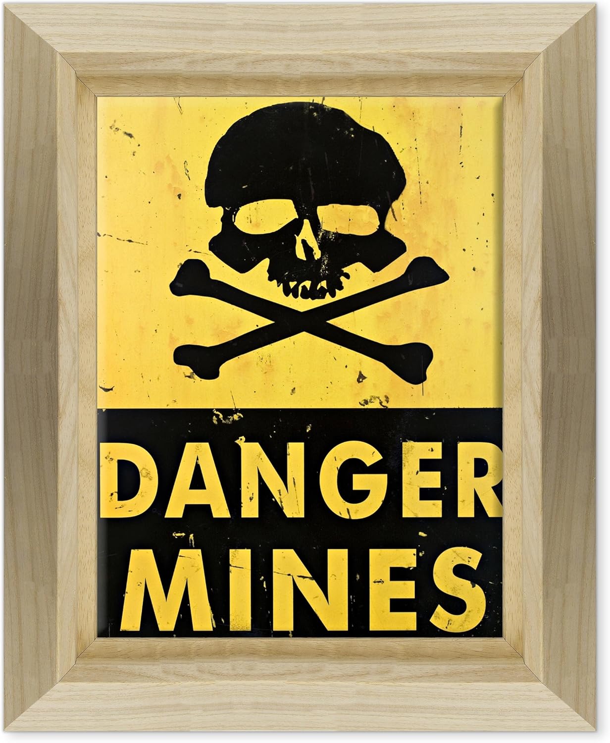 Conkrea Quadro Su Tela Canvas Intelaiato Con Cornice Attenzione Mine Danger Cartello Pericolo Di Morte Teschio 30x40cm Stile Design Legno Naturale Cod 1164 Amazon Co Uk Kitchen Home