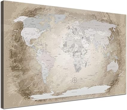 Lanakk Quadro Su Tela Mappa Del Mondo World Map Beige Inglese Con Cornice Di Legno Stampa Globus Artistica Colore Marrone Completamente Incorniciata Un Pezzo 150x100cm Amazon It Casa E Cucina