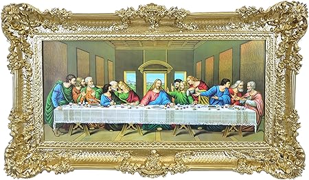 Idea Casa Stampa Su Carta Telata Ultima Cena Leonardo Da Vinci Cornice Barocca Quadro Cm 96x56 Oro Amazon It Casa E Cucina