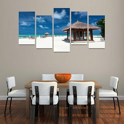 Binglin Cornici Moderne Per Quadri Decor 5 Pannelli Maldive Beach Stampe Artistiche Immagine Per Parete Modulare Camera Per Bambini Casa In Legno Poster L Amazon It Casa E Cucina