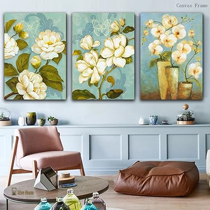 Abm Home Quadro Da Parete Motivo Fiori Set Di 3 Cornici Grande Cornice Da Parete Stile Vintage Tela Incorniciata Grande Poster Cornice In Tela 3 Pezzi Amazon It Casa E Cucina