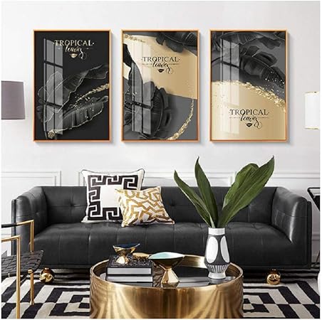 Foglie Tropicali Dorate Nere Stampe Su Tela Poster Quadri Astratti Quadri Su Tela Immagini Per Soggiorno Decorazioni Per La Casa 50x70cmx3 Senza Cornice Amazon It Casa E Cucina