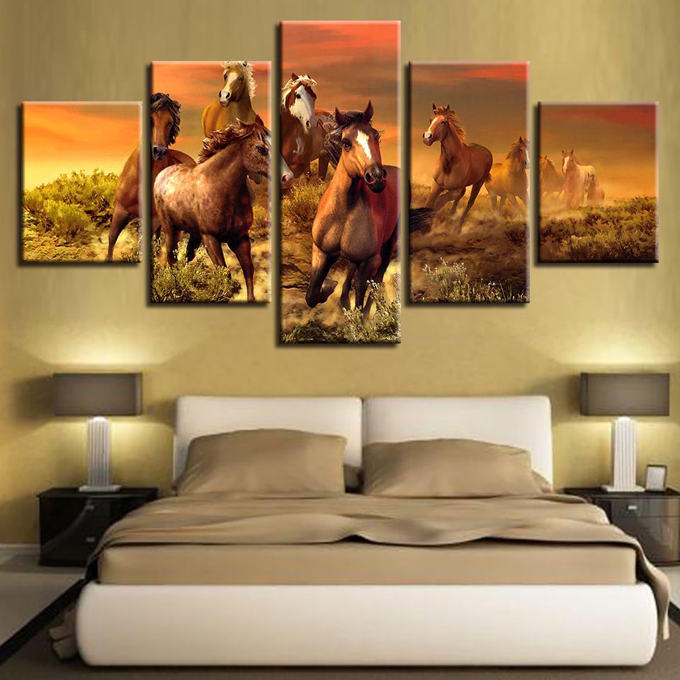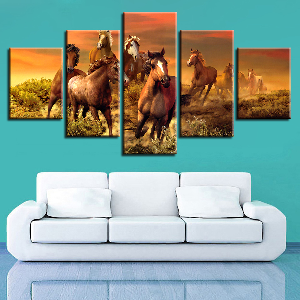 Acquista Cornici Quadri Moderni Decor Canvas Prints Gruppo Panel 5 Art Di Animali Cavalli Marroni Parete Modulare Immagine Bambini Camera Poster A 8 13 Dal Xu793737893 Dhgate Com