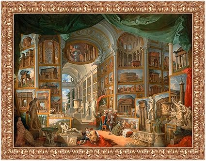 Lux Quadro Stampa Su Tela Giovanni Paolo Panini Galleria Con Vedute Di Roma Antica Con Cornice In Legno Oro Classico Misura 133x103 Cm Amazon It Casa E Cucina