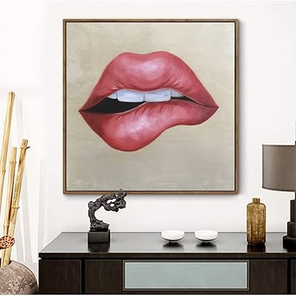 Colori Per Tessuti E Stoffe Casa E Cucina Kingxqq Quadri Moderni Astratti Con Labbra Rosse Su Tela Immagini Su Tela Stampa Giclee Decorazione Per Pareti Poster Stampe 60x60cm Senza Cornice