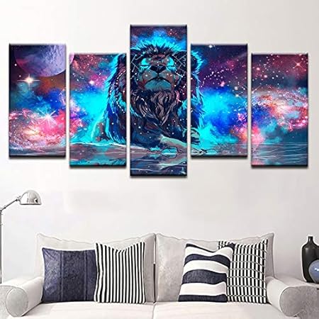 Quadro Decorativo Da Parete Con Stampe Su Tela 5 Pezzi Colori Astratti Nebula Leone Costellazione Xl Amazon It Casa E Cucina