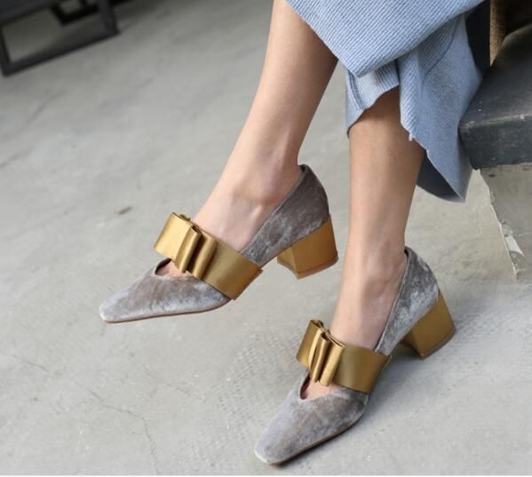 Acquista Cravatta Grande Vestito Di Velluto Scarpe Punta Quadrata Tacco Medio Scarpe Da Sera Da Sera Donna A 110 4 Dal Fashion Hot Shoe Dhgate Com