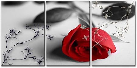 Amazon Com So Crazy Art Red Rose Wall Art Decor Flower On The Black And White Background Canvas Pictures Artwork 3 Panel Modern Painting Prints For Home Living Dining Room Kitchen Posters