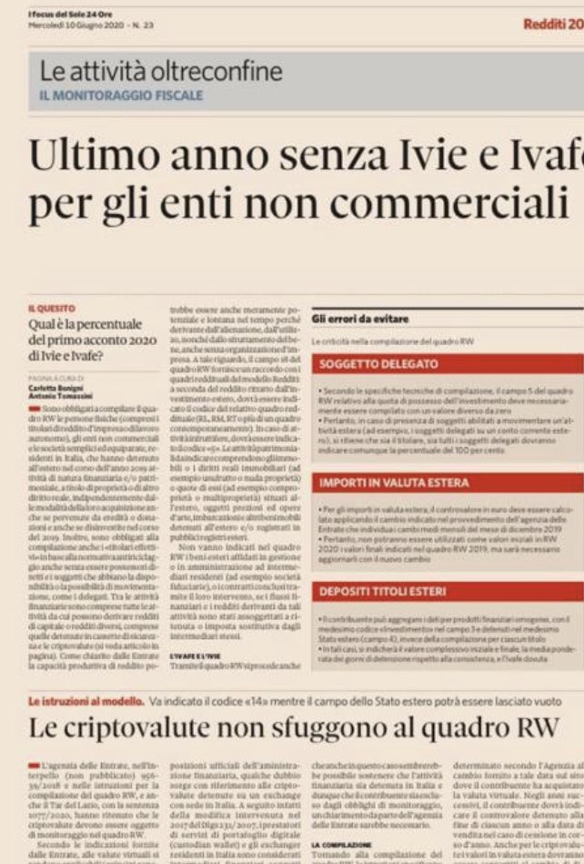 Antonio Tomassini On Twitter Il Punto Sul Monitoraggio Fiscale Un Adempimento Che Resiste Anche Nell Epoca Crs E Che Continua A Generare Questioni Interpretative Ivafe Criptovalute Rw Con Carlotts Negli Speciali Del Sole24ore
