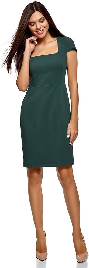 Oodji Collection Donna Abito A Tubino In Tessuto Denso Con Scollo Quadrato Verde It 40 Eu 36 Xs Amazon It Abbigliamento